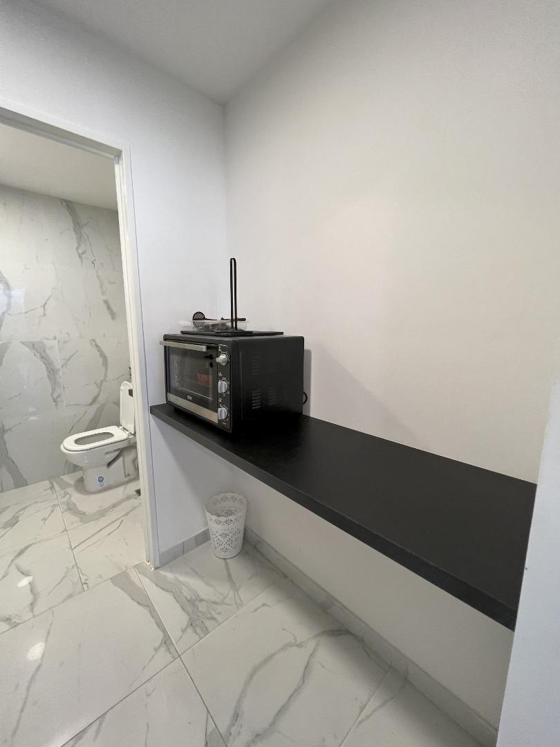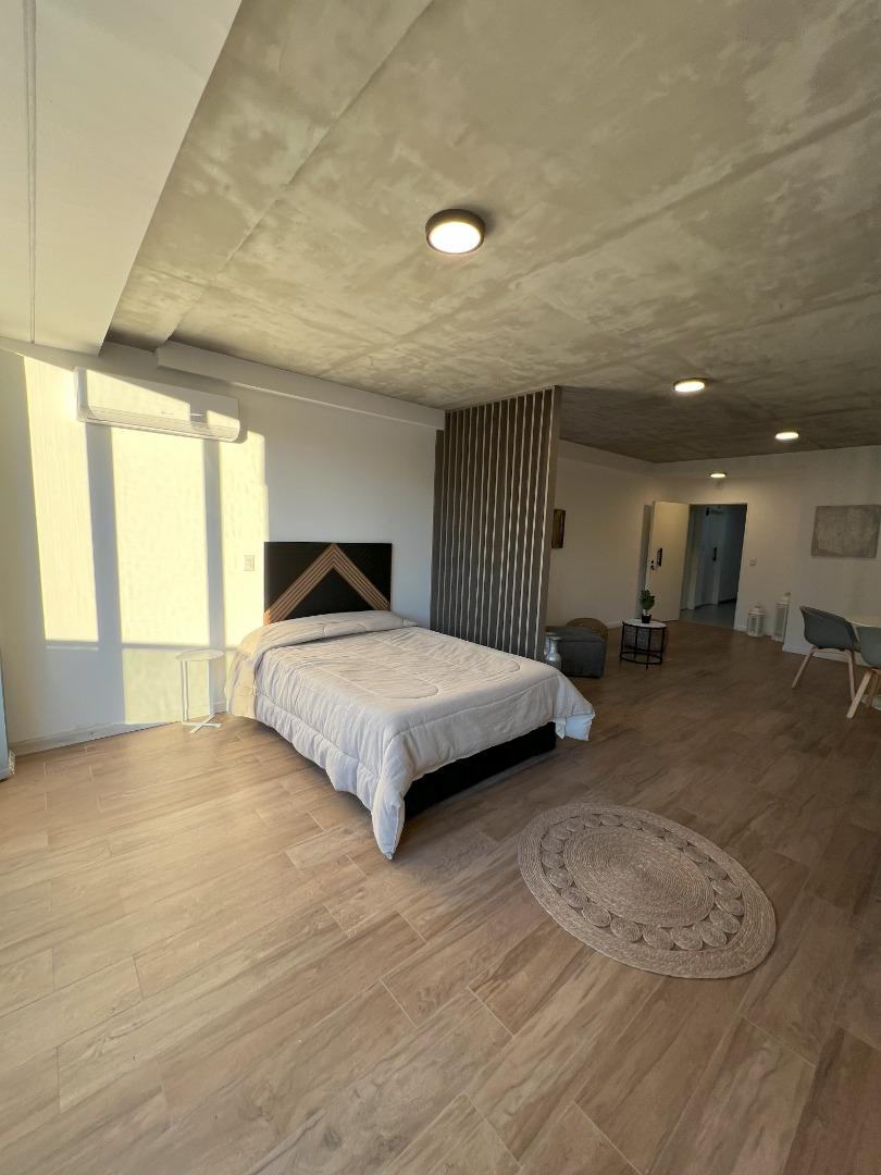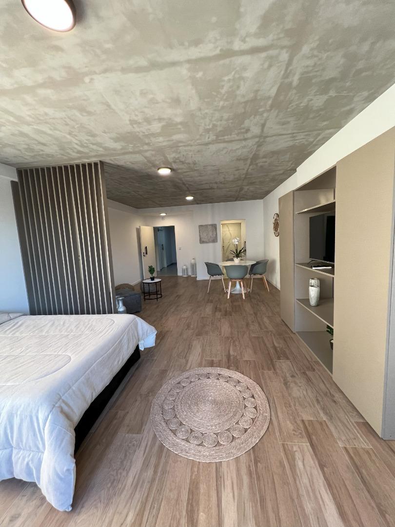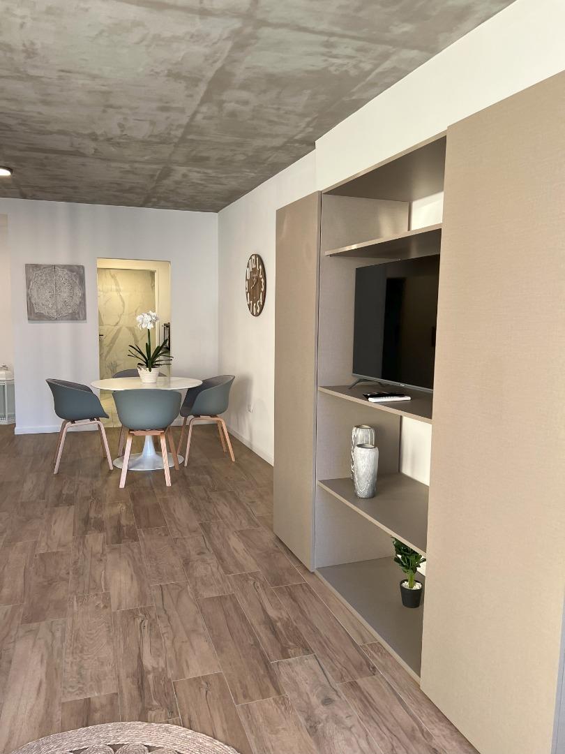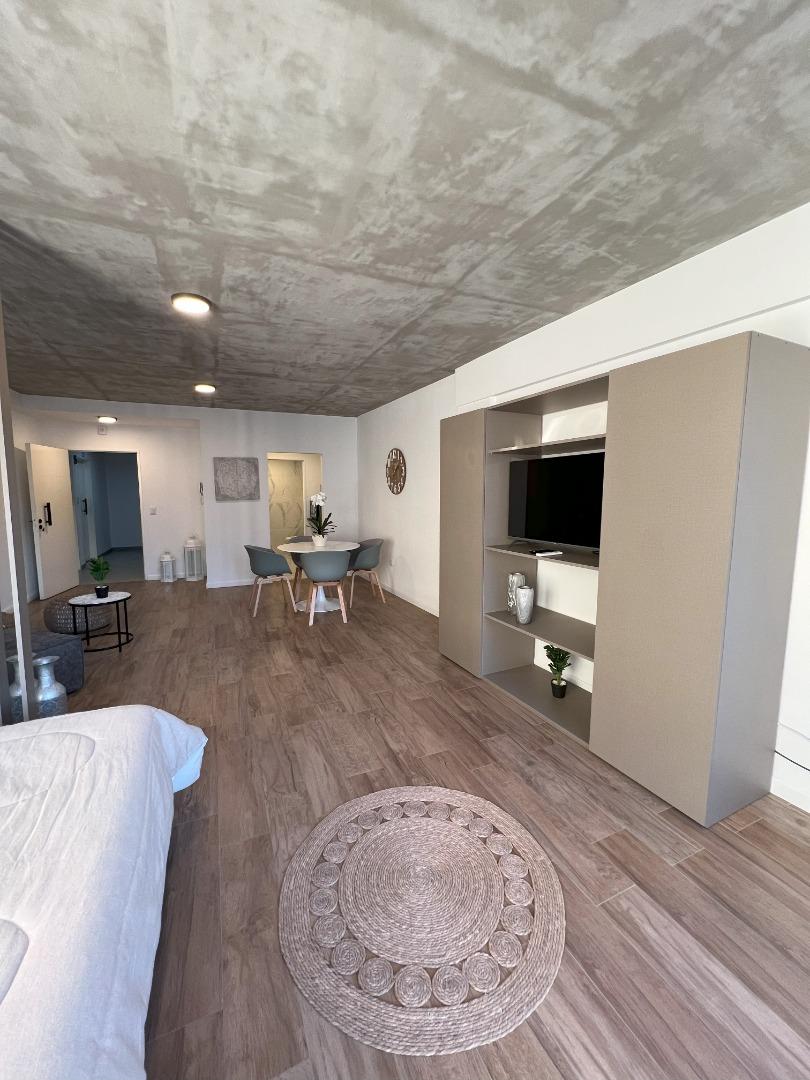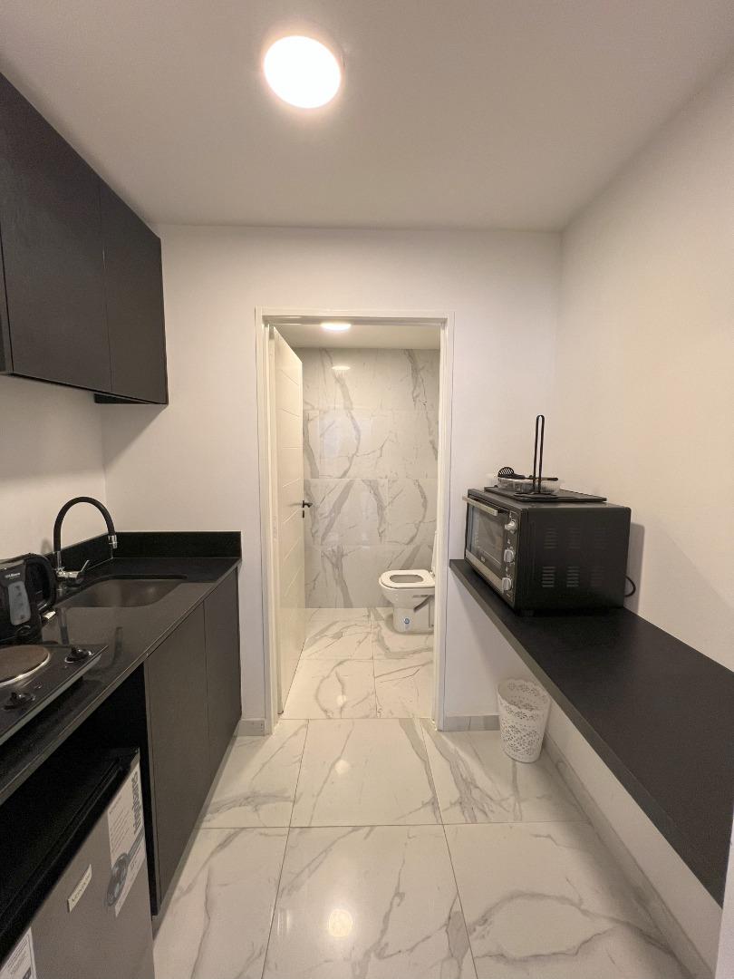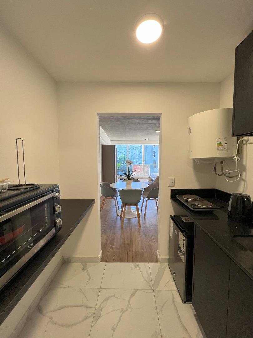 Amplio ambiente completamente amueblado. Cocina. Muy luminoso, hermoso baño